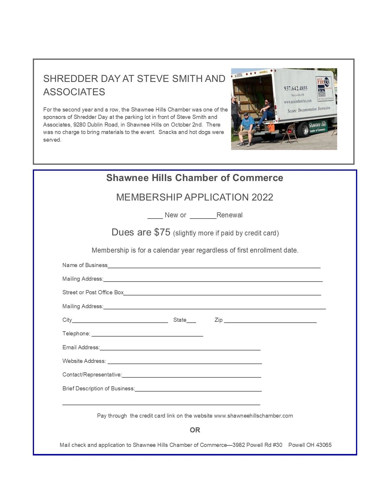 Phone 614-226-6709 email Shawneehillschamber@gmail.com