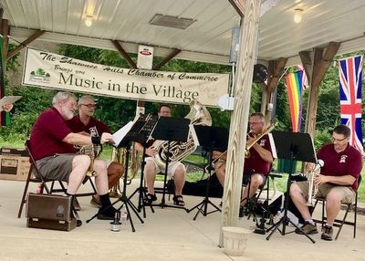Cap City Brass, of the Central Ohio Symphony performed from 4 to 5 pm. This quintet is made up of professional brass players from Central Ohio. They perform regularly around Delaware, the group can be heard playing music of Beethoven, Sousa, Joplin, John Williams (Star Wars), the Beatles, or a Disney tune about not talking about some guy named Bruno!!! Residents might remember that they performed at Music in the Village two years ago. At 5 pm the Rolf Remlinger and Warren Hyer from the Central Ohio Symphony led a community Drum Circle. This is a fun event and is open to children and adults of all ages.